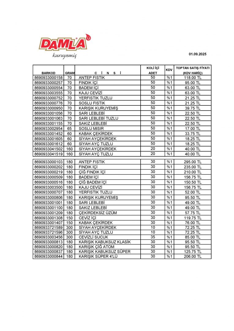 Fiyat Listesi